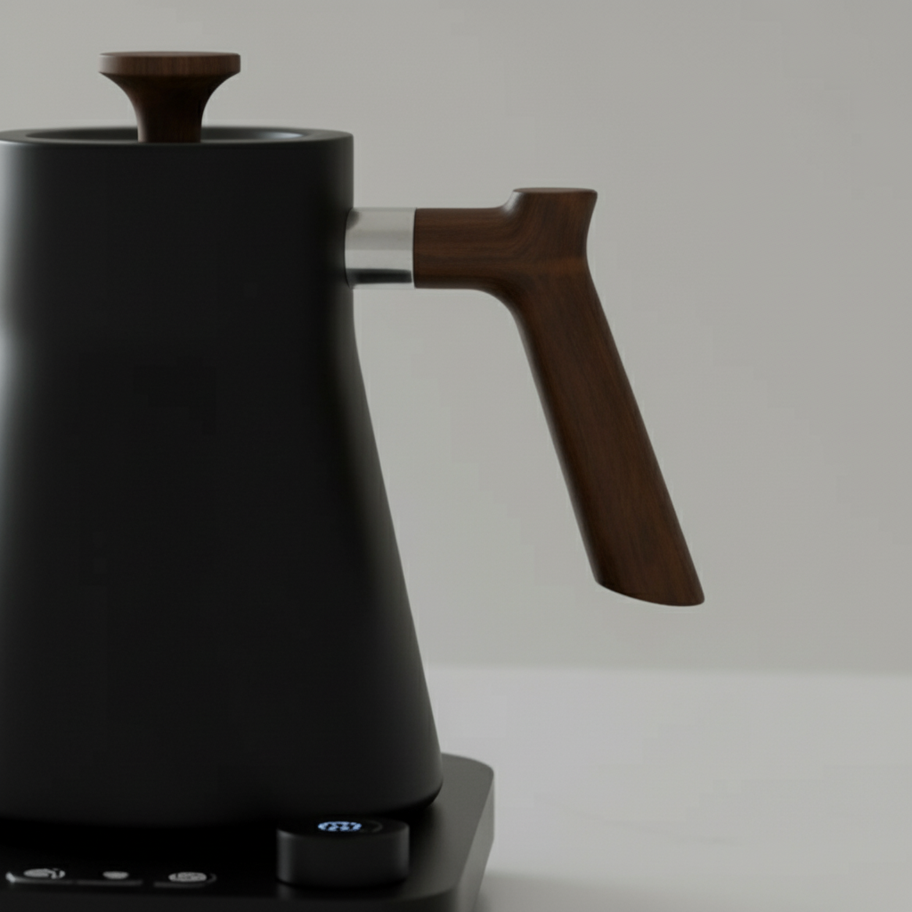 Balanced handle silent lid and gentle motion create a calm comfortable pour every time